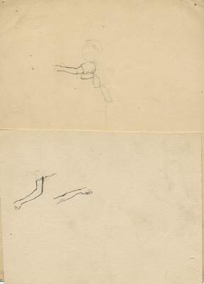 Two studies of hands and arms, two arms, one turned up & the other down on an 8vo sheet, and, on a 4to sheet, a profile of a young girl in a sashed dress, holding her arm in front of her, undated. £125 [No: 1997] |