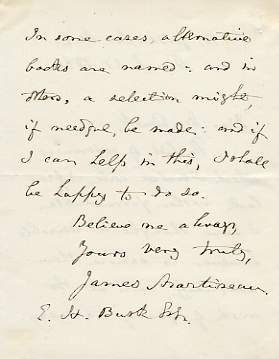 Autograph Letter Signed to E.H. Busk, 2 pages 16mo, 10 Gordon Street, 31 March 1864. Sending a list of references and apologising for its formidable length. £110 [No: 21975] The image is of the second page only. |