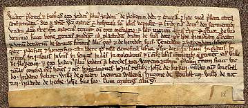 KNIGHTS TEMPLAR and KNIGHTS HOSPITALLERS Archive of twenty-eight documents, ca 1300, on vellum with twelve intact seals (one with an original protective fibre bag) in red and white wax. The seals impressed with birds, fleurs-de-lys, a standing figure and other devices, the documents overall in fine, fresh and attactive condition, all undated (as usual with documents of this period) but mostly before 1308. An archive of deeds by which the donors make, for the salvation of their souls and those of their families, gifts to the Knights Templar belonging to the preceptory of Temple Newsam ("Milites Templi Salomonis"), and to the Knights Hospitallers belonging to the preceptory of Newland, of land and property in the West Riding of Yorkshire: the archive comprising ten deeds making gifts to the Knights Templar and seventeen to the Knights Hospitallers, with one transferring land held of the Hospitallers; seven of the Templar deeds with early dockets identifying them as made to Newsam ("Newsum", "Newesam 36", "79 B. Neusum", "83 Newsam", "Newesam", "Neusam"): (i) Ten deeds of gift to the Knights Templar of Temple Newsam by Richard de Rihil [Ryhill], of some 20 acres in South Crossland [Crosland], land in Warderode, one-and-a-half acres by the moor near Adam le Venur with rights of burning building and fencing (3 deeds); by Lady Alina, widow of Crossland, daughter of Philip of Rihill, of half a house or toft (smallholding) which Elias son of Adam le Venur held and the right to take wood for building and burning within the boundaries of Crossland as well as pannage for their pigs within the boundaries of the donor's part of the woods; Thomas de Turstainlande [Thurstonland], of one and a half acres and an acre in Turstainlande (2 deeds); by Roger son of Walter de Thorneton [?the Roger de Thornton who in 1288 granted his land at Wilsden, WR, to the Abbot of Byland], of one assart (area of cleared land) in Greteland [Greetland] called Brendesidewaie Rod, rendering yearly to the donor and his heirs 3s 1½d for all services; by Ralf Tagun son of Jordan Tagun, of a grant and quitclaim of the house which his father Jordan Tagun gave them, and one and a half acres in Fullecroft; Robert son of William de Lepton, of ten acres in Lepton; by Alexander de Nevile, of all land which his brother gave the Templars, namely a bovate (about 15 acres) in Lepton, the assart held by Richard des Estages and that held by Hugh de Estages, a meadow held by Iwan de Lepton, and an assart in Lepton called Scakelsahe held by Richard de Spinis, also pasture for 200 sheep and 10 cows for two years in the common fields of Lepton; the Templar deeds witnessed by Brother Suanus, Samuel the Chaplain, Gilbert Chaplain of "Alemab.", Sir Jordan de Insula [Lisle], Sir John de Insula [?of Woodburn], Sir William de Patenum, Sir Thomas, Chaplain of the Temple, Sir William Dayude, G. de Notton, Seneschal [?Geoffrey De Notton, of Notton, near Wakefield, died 1280], Matthew de Scepesley, Seneschal, Sir William de Sumerville [?of Linton and Carnwath], Sir Eli[as] de Albo Monasterio [Whitchurch], Sir William de Alreton, and many others (ii) Seventeen deeds of gift to the Knights Hospitallers of Newland by Alan son of Simon of Wately, of all Hardinge Rode and land in Colresle; by Robert de Weteley [Whitley], of a third part of the land his uncle gave in Weteley; by Matilda de Stanforham of 3s which Jordan son of Matthew pays from the rent of Flackton [Flockton]; by Elias the son of Haswi of Heton [Kirkheaton], of land in Heton; by William son of Michael de Brethwisel, of land in Brethwisel; by Adam son of Jordan of Queteleye [Whitley], of a piece of land called Stodlee in Queteleye; by Elias son of Hasqui of Heton, of three acres in Heton; by Adam son of Robert de Notton, of land between the stream and castle of Almanbiria [Almondbury]; by John son of Jordan, of land in Colresly; by Robert son of Alan of Claiton, of land at Wetelaia [Whitley]; by Jordan son of Jordan of Floketun, of land held from Martin with money from the service of Simon son of Peter; by Walter son of Godwin of Heton, of a toft and croft in Heton; by Jordan son of Matthew of Flockton, of a toft and two acres in Flockton; by Richard the son of Alan of Weterleia [Whitley], of 25 acres north of Brerewell, plus a wood and free common belonging to the township of Clayton; by Adam son of Jordan de Queteleye [Whitley], of land in Queteleye; by Umfrud de Lasceles, of one toft and land in Leptun [Lepton]; by Alexander de Wetelei [Whitley], of land in Weteleia (iii) One deed by Adam son of Adam de Byrkeg de Cumberward to Peter to Colriselay granting the land and messuage held of the Hospital of Jerusalem in Crossland 28 items, on vellum, some attached together, with vellum seal-tabs, twelve with intact seals (one with an original protective fibre bag) in red and white wax, impressed with birds, fleurs-de-lys, a standing figure and other devices, one or two a little damp-stained, one nibbled at the edges, some light dust-staining, but in generally fine and fresh condition, undated (as usual with documents of this period) but the Templar deeds prior to 1308 and the rest seemingly of approximately the same date [c.1300].THE KNIGHTS TEMPLAR OF TEMPLE NEWSAM, PRIOR TO THEIR SUPPRESSION IN 1308: the Knights Templar, described in these deeds as Knights of the Temple of Solomon ("Milites Templi Salomonis"), were established at Jerusalem in 1119 to protect pilgrims to the Holy Land, soon becoming one of the most powerful crusading orders, distinguished by their white tunic emblazoned with a red cross. Once back from the crusades, they transferred their energies into the business of making money. In 1307 the financially acquisitive Philip the Fair of France arrested many of their members, accusing them of a spectacular range of heresies and indecencies. In England Edward II was at first reluctant to follow suit, but eventually took measures to suppress them on 8 January 1308; the order being fina