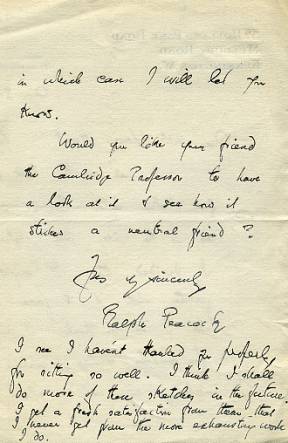 Autograph Letter Signed to Mrs Holman Hunt, 2 pages 8vo (slight tear in the fold), 32 Holland Park Road, 21 August 1928. Suggesting that another sitting is not required ('I might go further with it and fare worse'), and suggesting that 'the Cambridge Professor' might be called upon to give a neutral opinion. Paul professed his high religious principles throughout his career, even after his conviction for fraud and sentence to penal servitude (never served). Kensal Green was the most fashionable burial ground in Victorian England. Based on Pere La Ch £65 [No: 24475] The image shows the second page only. |