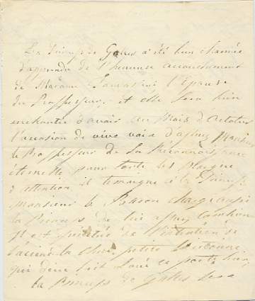 CAROLINE, Queen (1768-1821). Consort of George IV. Autograph Letter Signed as Princess of Wales ('Caroline Princess de Galles'), in her appoximate French, to Professor Tamassini, 3 pae 4to, [Pesaro], 21 August 1818. Expressing her pleasure at the news that his wife has been safely delivered of a baby girl, looking forward to congratulating him in person on his next visit, and conveying the good wishes of 'Monsieur le Baron'[her lover, Bartolomeo Pergami]; she adds that she will be especially pleased to see him again later in the year as she hopes that Cardinal Albani will be in Pesaro at that time, and notes that Marquis Antaldo's letters to their mutual friend Dr Rosari appear to be censored by the police (".comme la police est si inquiet a son suject.") Caroline's marriage to the future George IV (already secretly married to Mrs Fitzherbert) had been a disaster from the outset, and they lived separate lives. Offended at her exclusion from the celebrations to mark the fall of Napoleon in 1814, Caroline agreed to leave the country in exchange for an annual allowance,and settled in Italy, where she was soon living openly with her former servant Pergami (or Bergami). Gossip about her affairs and lifestyle was widespread and Hanoverian spies watched her in the hope of obtaining proof of adultery which would give George grounds for the divorce he wanted, but never obtained. When her husband finally acceded to the throne in 1820, she was famously shut out of her own coronation. Provenance: from a collection formed by A.M. Broadley in 1903. [No: 24791] The image is of the first page only. The image links to a larger or more detailed version.