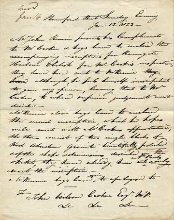 Autograph Letter Signed to John Wilson Croker (1780-1857, politician and writer), 1 page 4to with integral address-leaf, Stamford Street, 17 January 1823. Sending two inscriptions, one for the Ramsgate Harbour obelisk and one for a memorial in St Pauls, and asking for Croker's opinion ('whose superior judgement must decide'). £45 [No: 26039] |