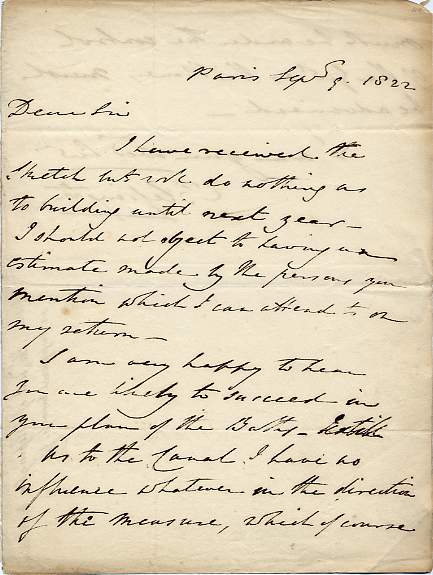Autograph Letter Signed to an unnamed correspondent ('Mr Elmes' written in another hand), 1½ pages 4to, Paris, 9 September 1822. Acknowledging receipt of a sketch for a proposed new building, suggesting he send an estimate, and congratulating him on his plans for the Baths. Blessington's correpondent is presumably the architect James Elmes (1782-1862) Blessington married Margaret Farmer, an attractive young widow in 1818; he paid £10,000 to Captain Thomas Jenkins with whom she had been living by way of reimbursement for the jewels and clothing that Jenkins had purchased for her. On her marriage she changed both her birth name and surname to Marguerite, Countess of Blessington. Blessington spent lavishly on his bride and their London home became a popular place for fashionable soirées, but they were both heavily in debt by the time of their continental tour in 1822 with Marguerite's younger sister. £45 [No: 26500] The image links to a larger or more detailed version. |