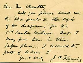 Autograph Letter Signed on a postcard to H.B. Wheatley at the Society of Arts, 26 July 1896. Asking for 'blue prints or copies' of the diagrams for his Cantor Lecture. £85 [No: 8071] |