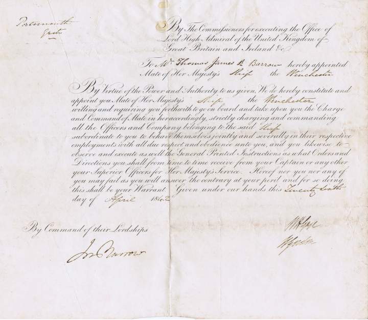 BARROW, Sir John, 1st Baronet, autographs, letters, documents, manuscripts