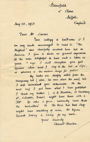 BLUNDEN, Edmund Charles, autographs, letters, documents, manuscripts
